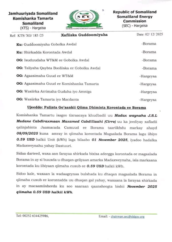 Tababarkan waxaa bixinaysa Amal Suleiman (Hagoog) oo ah la taliyaha shaqada iyo shaqaalaha ee world banka (Capacity Building Advisor , world Bank) ee komishanka Tamarta waxaana maalgaliyey mashruuca dib u habaynta korontada soomaaliland ee WB.